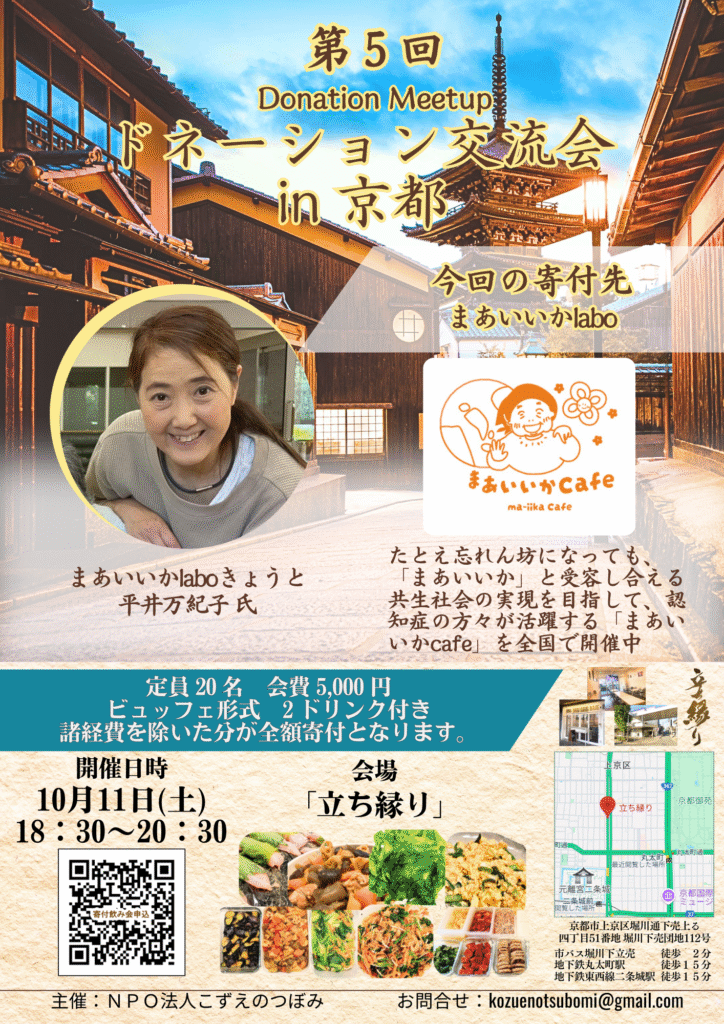 次回は10月11日(土)、寄付先はまあいいかlaboきょうとさんです。